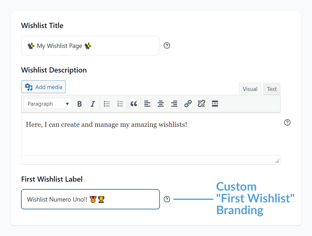 Previously, the plugin automatically created a list named โFirst Wishlistโ for every new account. Now, a new First Wishlist Label setting gives you full control to name this initial list whatever you want so it fits your brand voice.