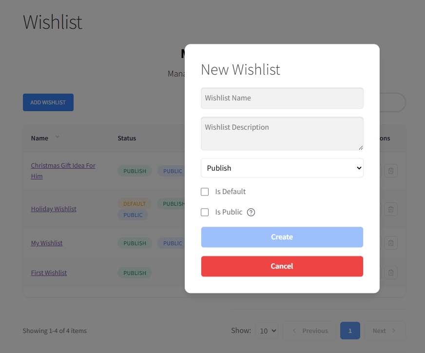 • Remove individual items or delete entire wishlists. Public links are removed immediately.