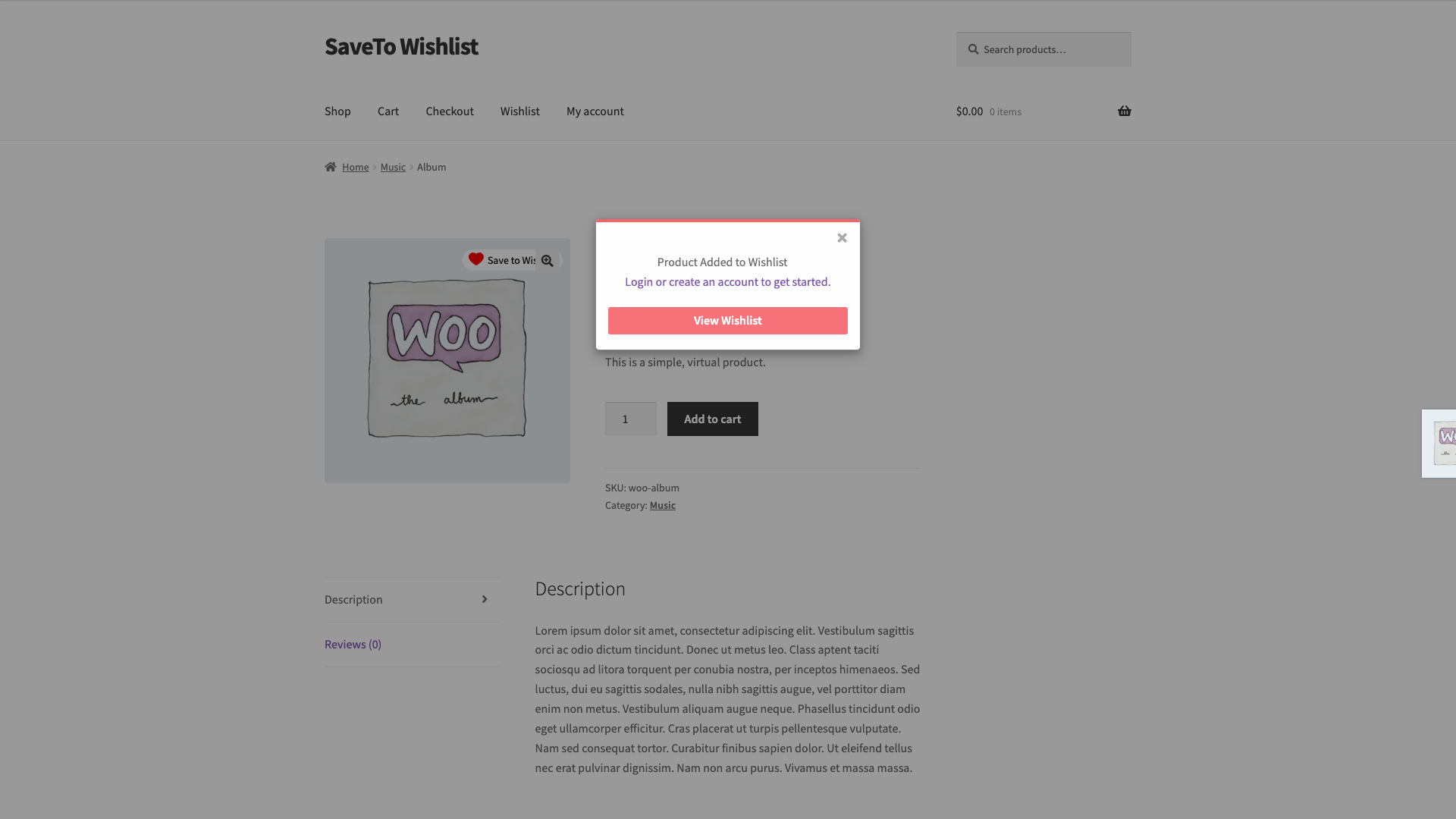 • Disabled (default): The Add to Wishlist button appears on product and shop pages for everyone, including visitors who are not logged in. Guests can save products and view their wishlist.