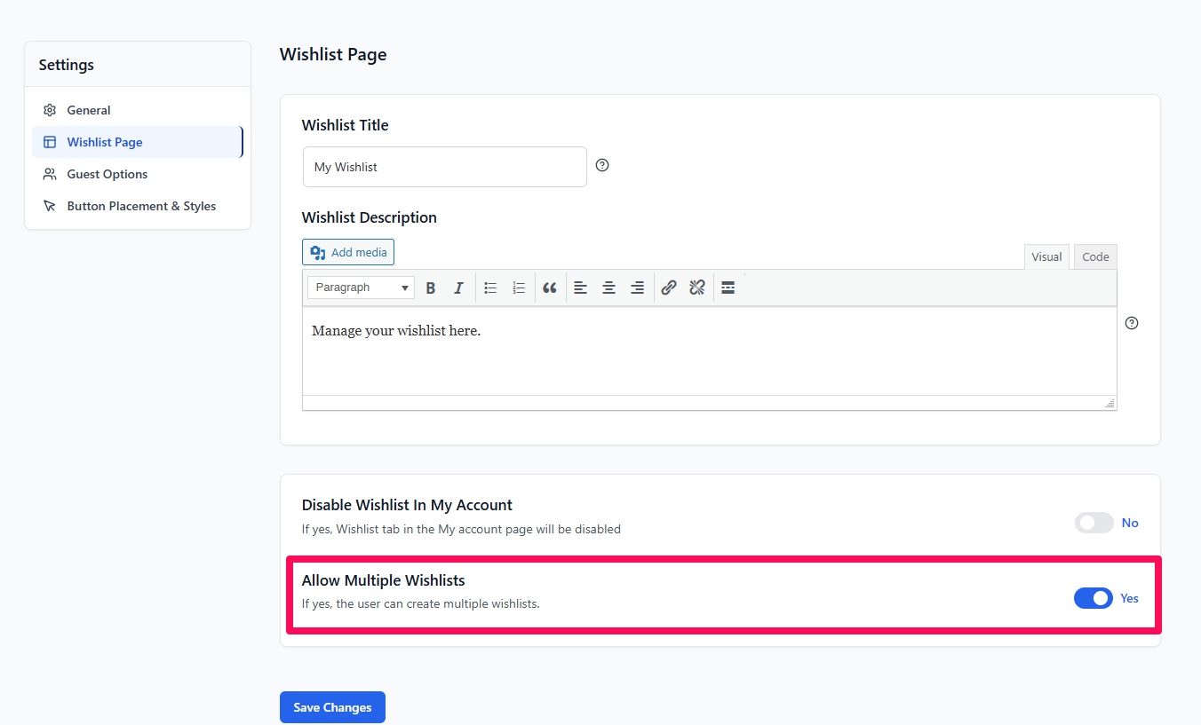 3. Look for the toggle labeled “Allow Multiple Wishlists”.