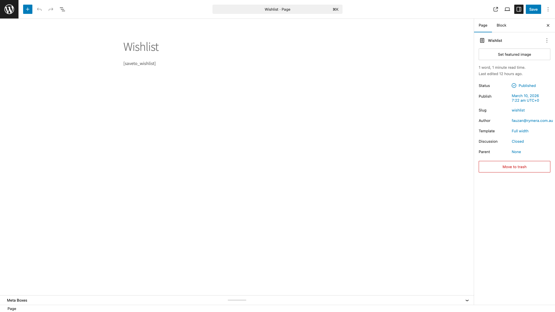 When you install and activate SaveTo Wishlist, the plugin automatically creates a dedicated Wishlist page and places the [saveto_wishlist] shortcode on it. You do not need to set this up manually — the page is ready to use as soon as the plugin is active.