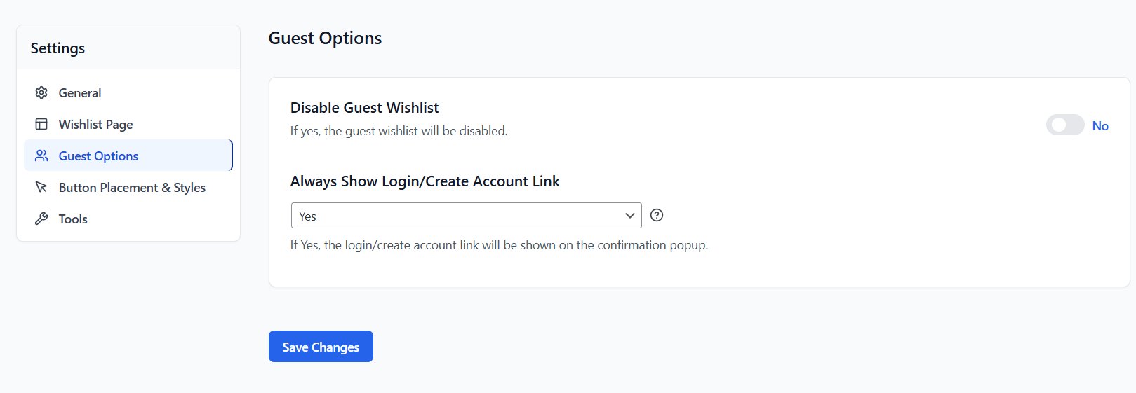 - Disable Guest Wishlist – Turn this on to prevent guest users from creating or using wishlists.