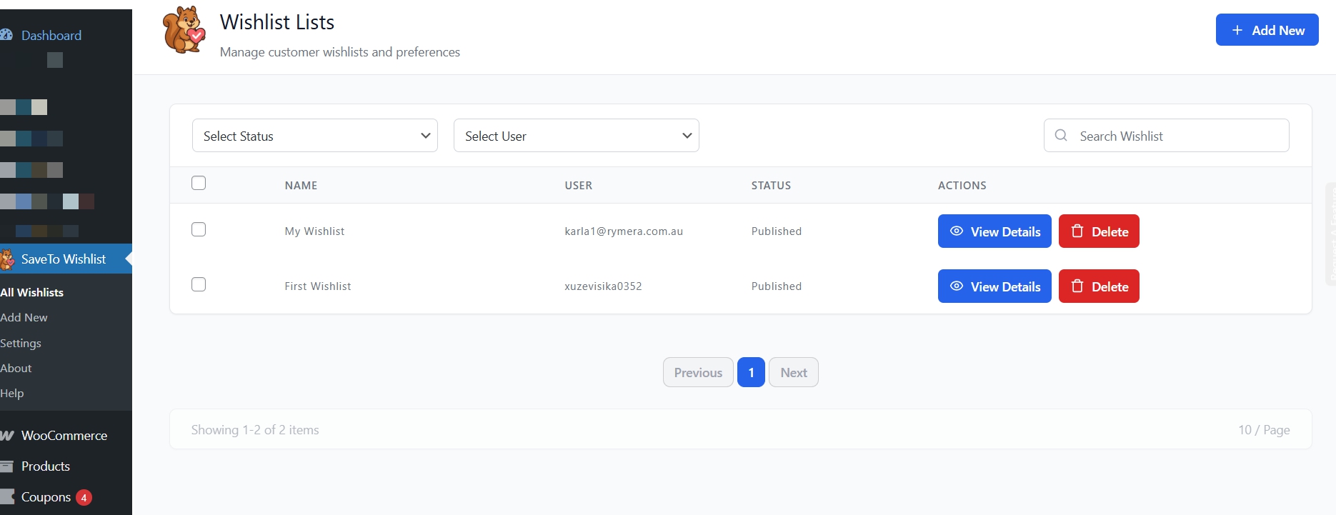The SaveTo Wishlist Dashboard is your central hub for managing all wishlist activity on your WooCommerce store.