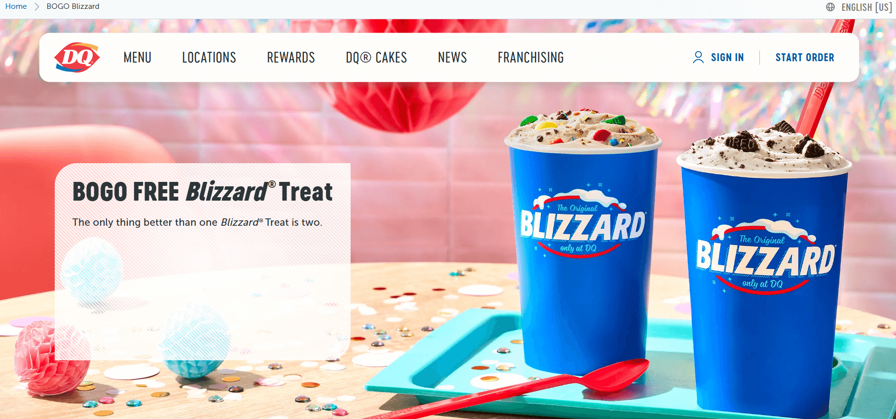 Colorful promotional banner for a BOGO free Blizzard Treat from Dairy Queen