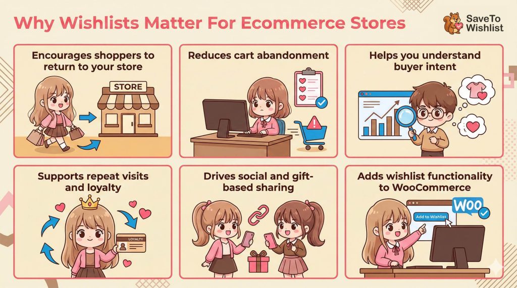 Wishlists give store owners insight into what customers want most, support repeat visits, and offer opportunities for personalized marketing, increasing sales chances.