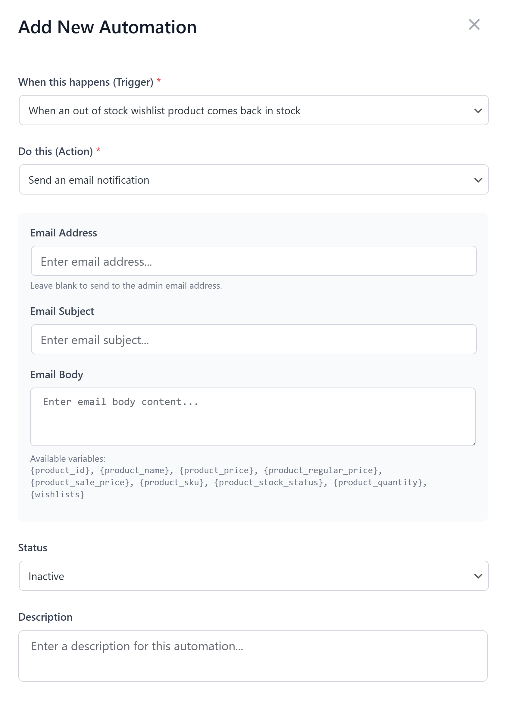 This action delivers a personalized message straight to a customer’s inbox. It’s a great way to send them alerts whenever something related to their wishlisted items occurs.