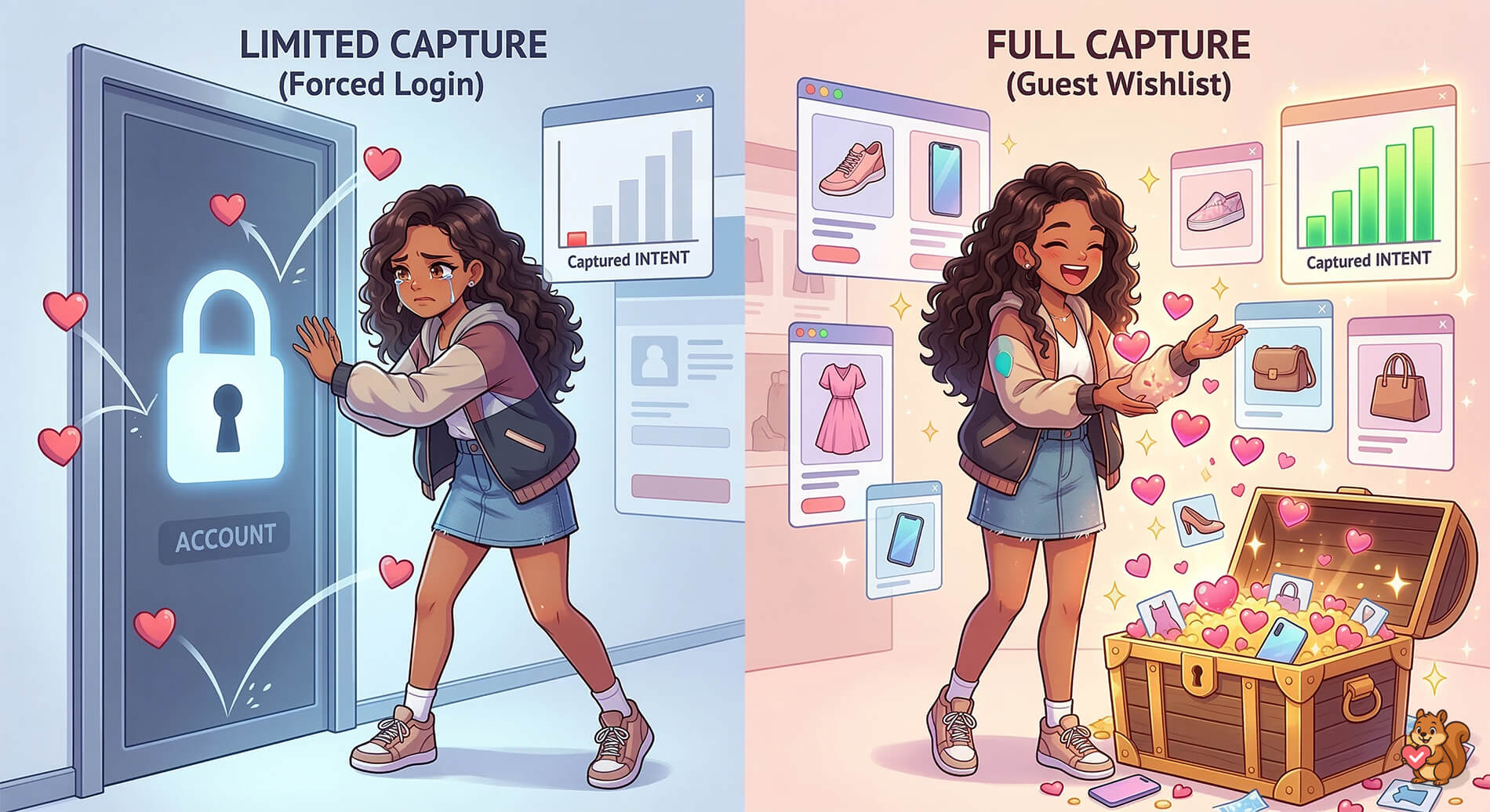 - A surge in total saves: Because there’s zero cost (time or data) for a user to save an item, you’ll see a much higher volume of wishlist activity compared to a login-only setup.